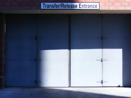The Clark County Detention Center Transfer and Release Entrance are located on the 300 block of South 1st Street downtown Las Vegas, Nevada.